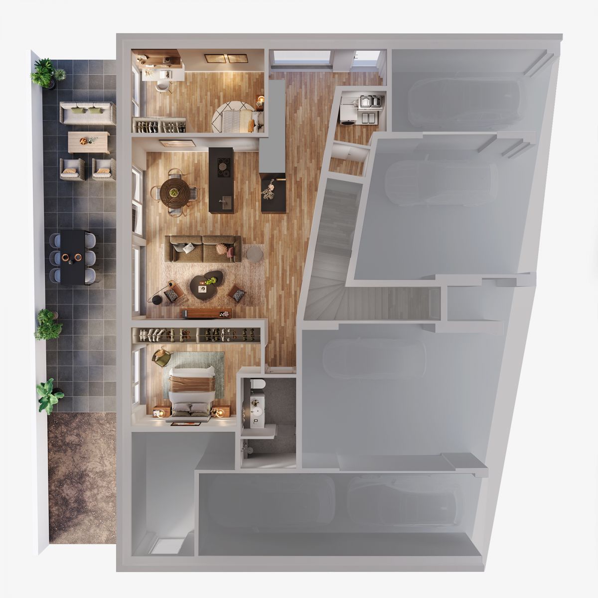 CAV Studio structures each 3D floor plan with the buyer journey in mind. We highlight key spaces that matter most to decision-making, such as the main living area, master suite, and outdoor connections. Camera angles, proportions, and styling are chosen to make the layout feel intuitive even at a glance. International sales teams use these visuals in online listings, digital brochures, and video calls, knowing that the layout story is clear and consistent every time.